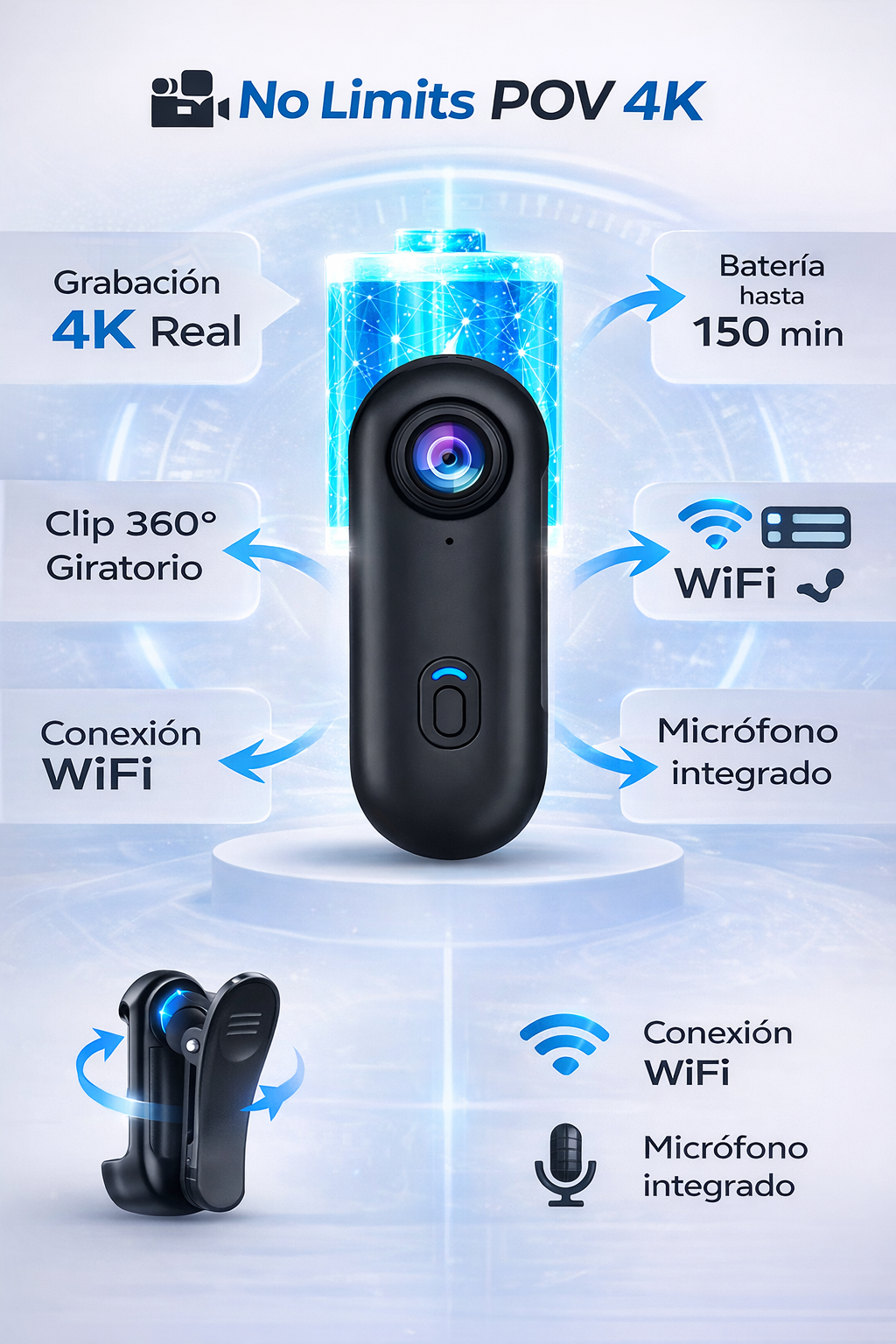 Sí. La NO LIMITS POV 4K incluye un kit completo de accesorios para que empieces a grabar desde el primer día, sin comprar nada extra.