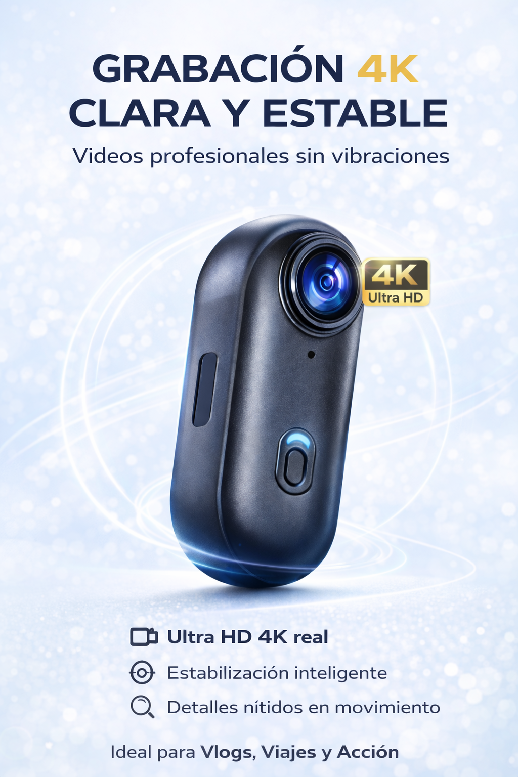 Ideal para grabaciones en movimiento, viajes y actividades al aire libre.